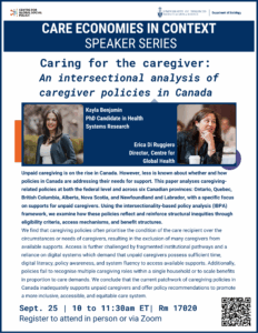 Erica Di Ruggiero is an Associate Professor of Global Health, Social and Behavioural Health Sciences Division, and cross-appointed to the Institute of Health Policy Management and Evaluation, Director, Centre for Global Health, and Director, Collaborative Specialization in Global Health, Dalla Lana School of Public Health. She teaches courses in global health, global health policy and on the evaluation of population health interventions. Her program of research draws upon different theories and mixed methods to evaluate the health and health equity impacts of policy interventions addressing health and social issues (e.g. precarious work) in different global settings, within the context of the Sustainable Development Goals.